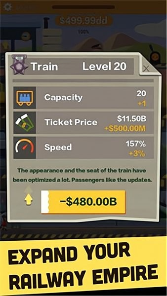 2、升级火车和站台,以向您的乘客出售更多的门票并赚取更多的钱。