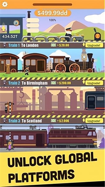 火车站放置大亨有着轻松的经营模拟玩法,游戏中玩家将作为火车站的管理员,想要让它们按部就班的运行,你需要合理规划线路,让每辆火车都能安全行驶,同时还能去解锁世界各地不同的地图,开通的铁路线越多收益越丰厚哦!您是否曾经想创建自己的火车帝国并赚取数百万美元?现在,您可以在这个闲置的火车站大亨中,从头开始创建自己的业务,并发展成为行业中的巨头。