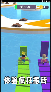 搬砖工大挑战是一款卡通风好玩有趣的动作闯关类游戏,玩家在这里可以进行一场有趣的跑酷挑战,在游戏中收集更多的板块帮助你完成更多酷跑任务,使用这些板块帮助你搭建一个到达终点的通道,同时可以利用这些板块进行超近道顺利的进行升级体验。这款游戏的玩法非常的具有创意,玩家们在游戏中去收集更多的板块来完成你的跑酷闯关挑战,你可以使用这些板块来搭建出一条可以快速到达终点的通道,可以用板块来抄近道,最后第一个到达终点就可以过关哦。感兴趣的朋友赶紧下载体验!