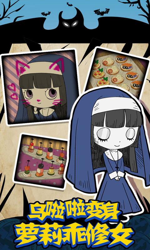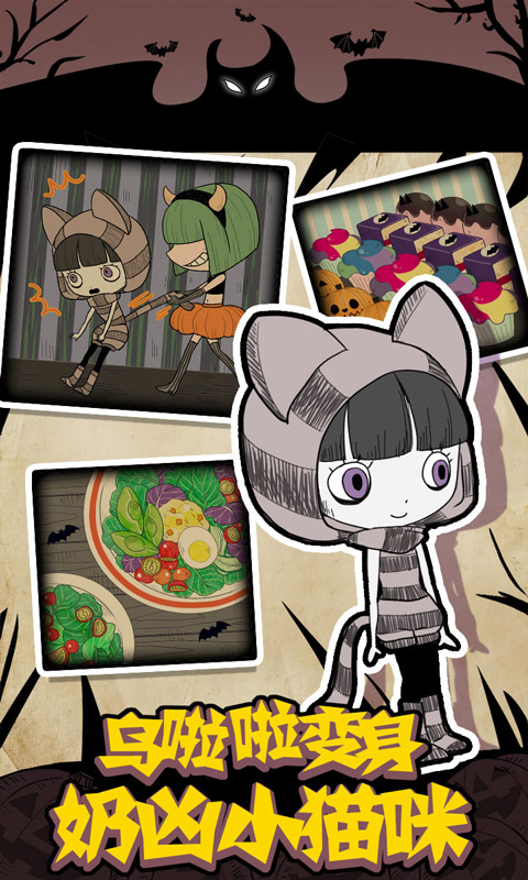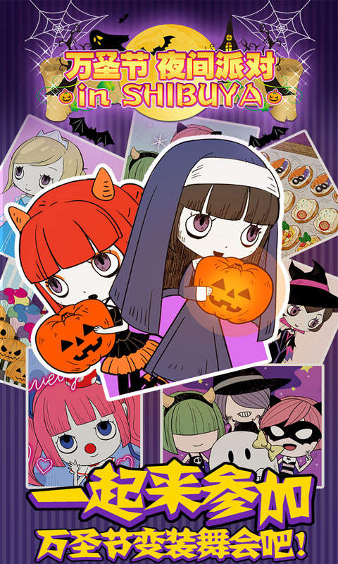 3、游戏采用可爱搞怪的风格为背景,二次元卡通动漫的画风,精致细腻的画面,给人深刻的印象,游戏中玩家需要帮助女主角顺利的融入新环境之中,和小伙伴一起在万圣节当天打扮成不同的服装,游戏给人眼前一亮的感受体验,喜欢的朋友快来下载吧