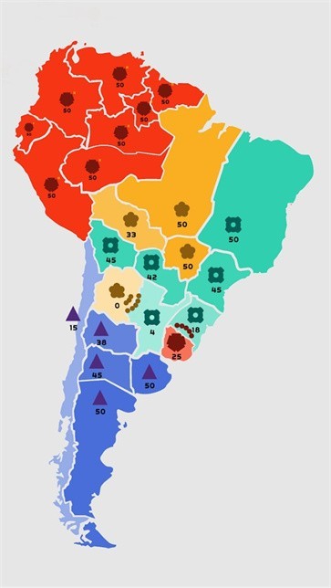 所有占领区域的地图,但这里分为不同的部队,和力量都是不同的,