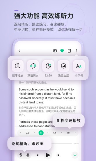 4、【变速播放】六档语速按需调节,不落下任何发音细节