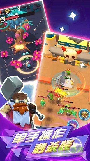 1、卡通风格的画面场景,各种可爱的人物角色,将与你一起并肩作战;