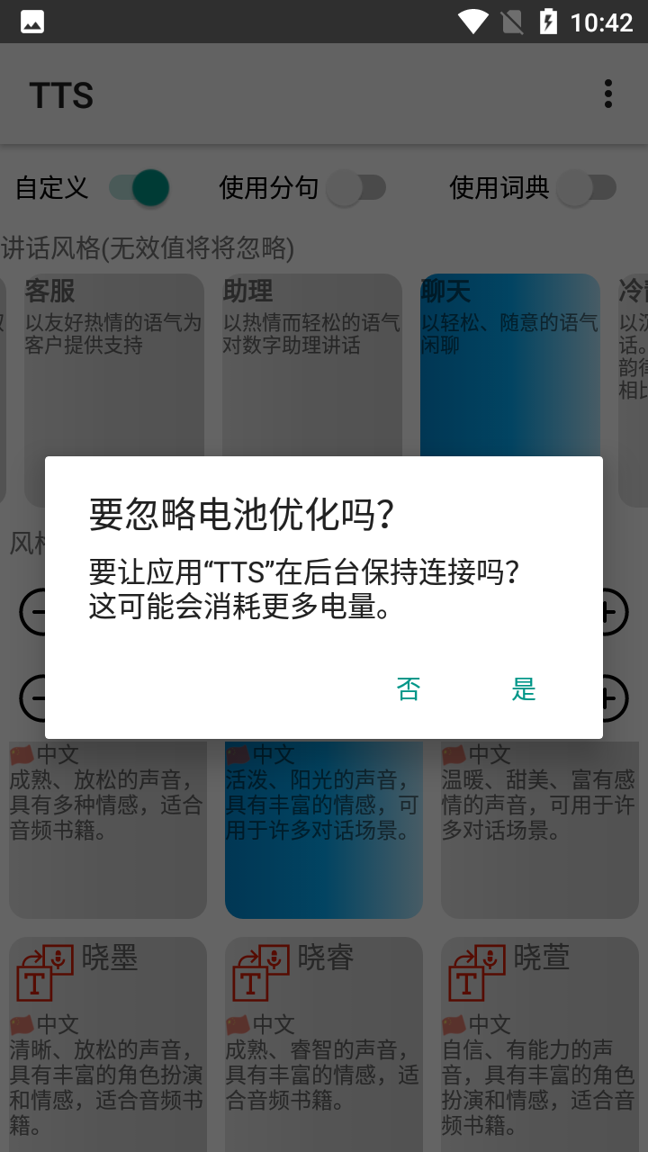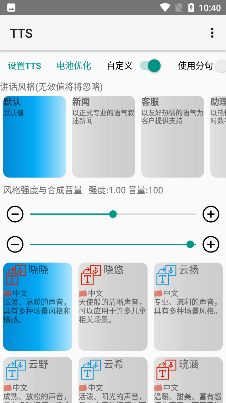 根据微软的tts接口打包组合的一款应用,微软TTS语音朗读app是个完全免费的工具,可以支持你手机上的小说软件,有十几种语气可以播放,还有多种语音可以选择,解放双眼,听小说的神器。