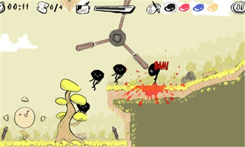 1、跟着游戏的音乐节奏一起,操纵着墨汁,越过重重障碍,到达独木桥的另一端。