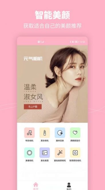 元气美妆相机app是一款非常好用的手机美颜拍照相机软件,一键添加各种高级滤镜,在这款软件上拥有大量的贴纸滤镜免费给大家使用,能够帮助大家满足不同的变装要求,可以帮助喜欢拍照的小仙女们拍出各种各样好看的照片。