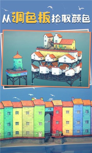 1、有各种各样的高清化的游戏场景,建设水上小镇的玩法很新颖,带来的视觉体验也不错。