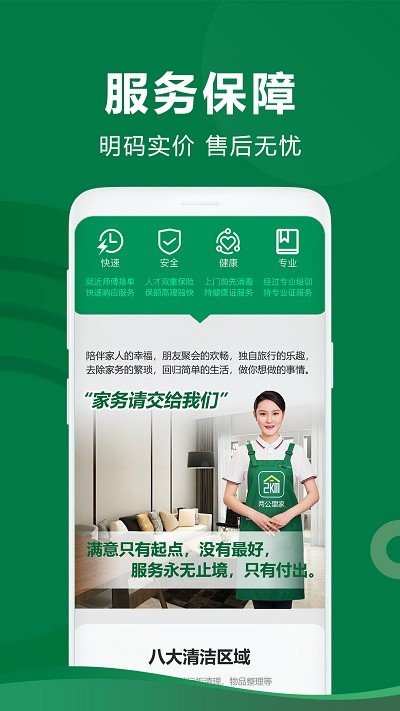 能够对第三方商家进行严格的认证,获得非常安全便捷的服务,让大家感受到一站式的家政服务。