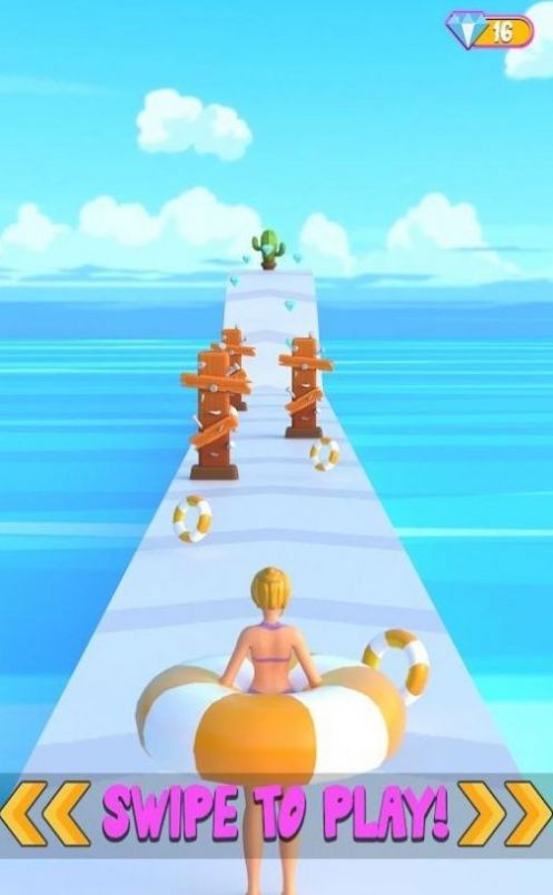 1、自由选择喜欢的人物角色,解锁相应的游泳圈,在不同的场景地图当中参与跑酷前行,展现你强悍的操作实力,在地图上能够走得更远!