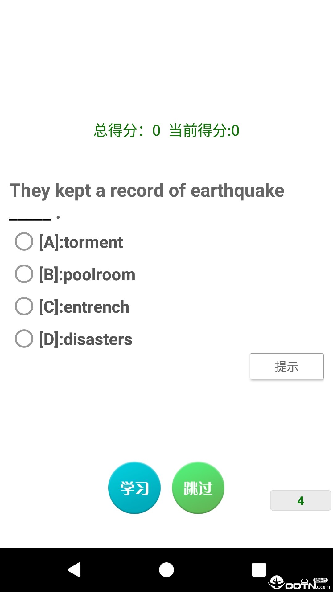 这是一个非常实用的软件,软件里有各种各样的功能满足你各种学习需求,从小学到大学的词汇以及英语学习方法软件里面都有,趣味的图片和新颖的英语学习模式,让你从此学习英语不再枯燥,对英语充满兴趣,喜欢上英语。