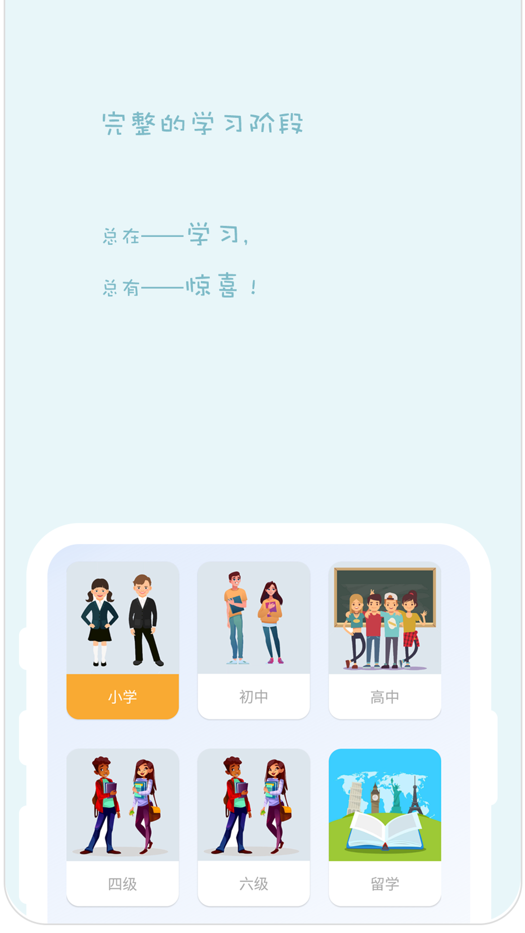 4、小初高、四六级、留学、商务、考研...,依据学习阶段定制。