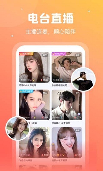 1.电台直播让你看见多个漂亮的以及帅气的小哥哥,找到聊天互动很有趣;