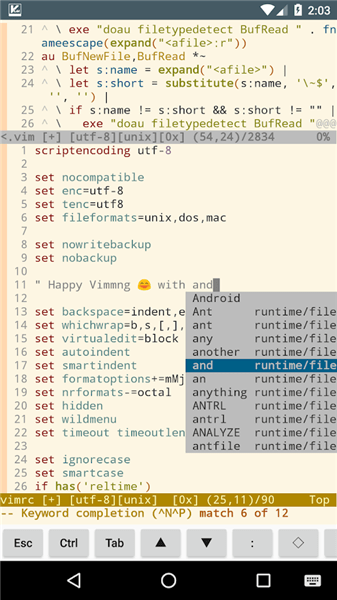 vim编辑器,一款手机上的编辑器,适合玩机党,对于这个没有变成基础的用户不建议使用,可以帮助用户进行各种文字编辑包括代码编辑,使用vim下一页软件也可以对手机的文件做出修改和清理,界面整洁,用户能很快的就开始使用它并且快速上手编辑。vim下一页软件里面自带标记功能,遇见重点用户可以多文章进行标记。