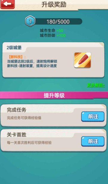 1、 不断建造强大的堡垒或者是升级自己已有的堡垒,抵御一波又一波的敌人来袭,随着关卡的不断递增,游戏难度也会随之递增。
