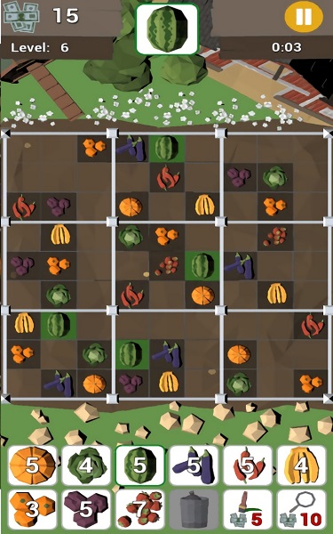 3、花园里有无数的水果,现在您要去收获它,并消除管理游戏的玩法,以创造一个美丽的乡村田野。