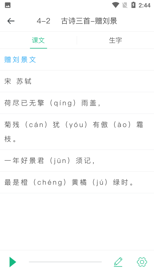 小学语文课堂app是一款智能的语文学习软件,为同学们带来了同步课程的语文学习资源,打开手机随时可以找到要学习的语文课文,有详细讲解,非常适合提前预习!与教材同步包含了小学全年级的课本,支持点读遇到生僻字也不怕,有课文注释以及讲解,帮助孩子更加透彻了解课文,喜欢的朋友就来下载试试吧!