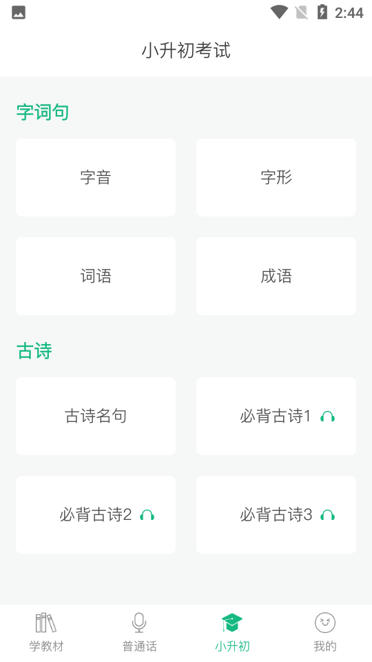 (4)小升初的字音、字形、词语、成语以及文言古诗等内容的综合复习。