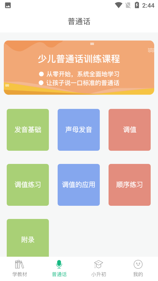 (5)“朗诵”栏目。从最基础的声母韵母到朗诵技巧,进行系统学习。