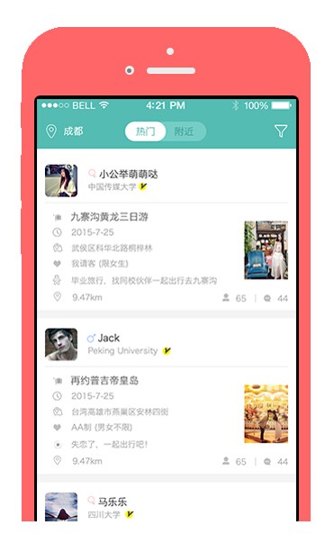 [学生活动]用户可自行发起活动,随时结伴,在线实时群聊,即时语音,你我有缘不如一起去浪。