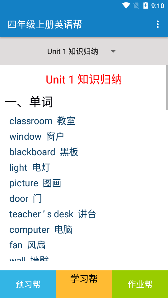 2、学习帮,各个单元的知识归纳,包括单词、语法、句型,并适度拓展和总结。