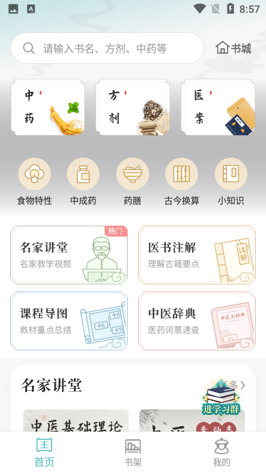“中药词典”、“中成药应用”、“中医基础知识”、“中药炮制与熬法”四大栏目,不怕料不够,就怕你不学