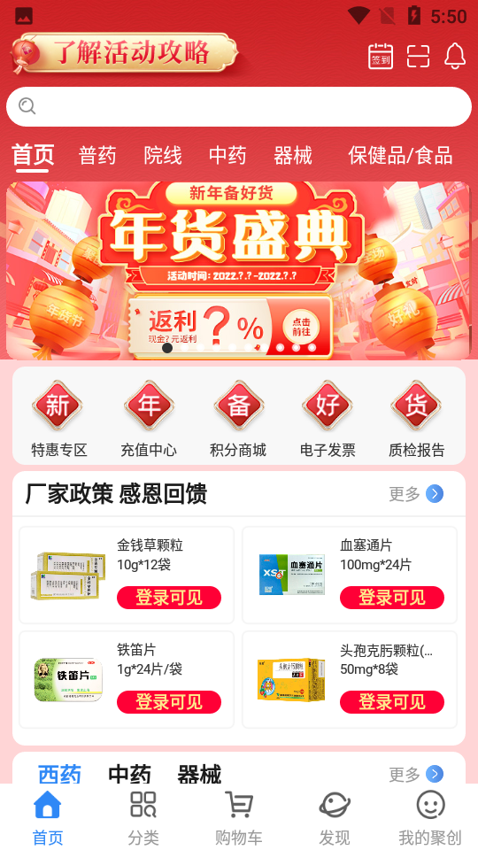 聚创医药网app是一个互联网医药服务商城,这里拥有正规的医药,支持采购、批发,丰富商品,随时采购!就是聚创医药的线上交易平台,用户可以随时随地的在聚创医药上面购买自己想要买的商品,所有的药物应有尽有,并且用户在登录软件时,只需要通过自己的手机号,便可以快速的注册,然后便可进行药物的购买,所有的药物都是经过严格检测的,保证药物的安全。