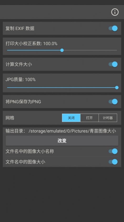 图像大小应用程序配置有保存、通过电子邮件发送、打印或分享最终图像的选项。