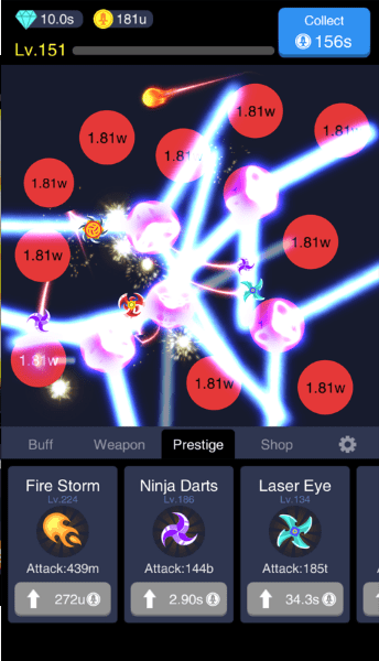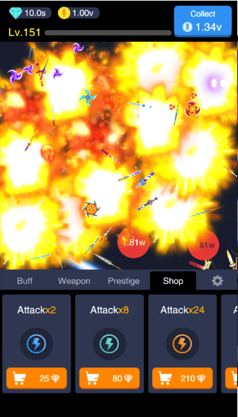 2、简介的游戏界面,操作极简,升级武器,提升自己的射击能力;