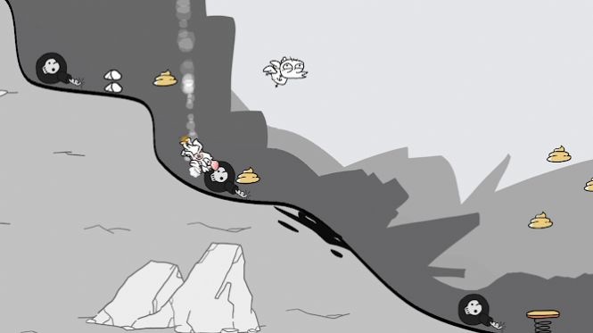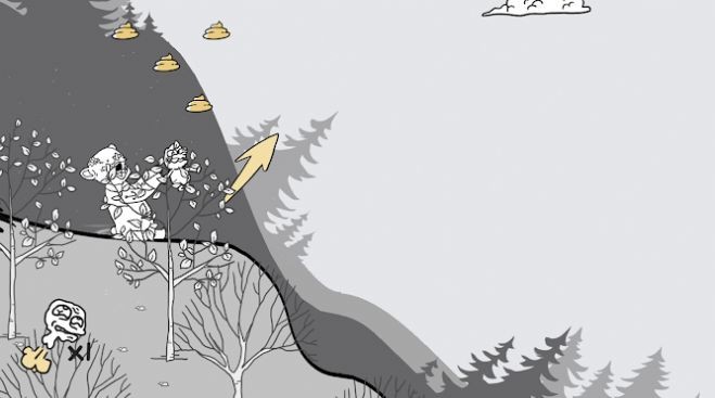3、从山顶飞下放屁力量。画一条飞行路线,帮助并克服障碍。