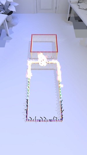 2、有趣的玩法,将自己堆放、设计的火柴路线,燃烧并最终引爆。