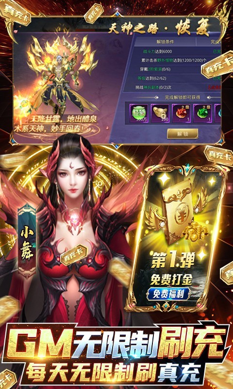 1.上线免费激活GM工具箱,每日送免费直充,更送满阶坐骑,GM商城,GM礼包,GM特权等等!