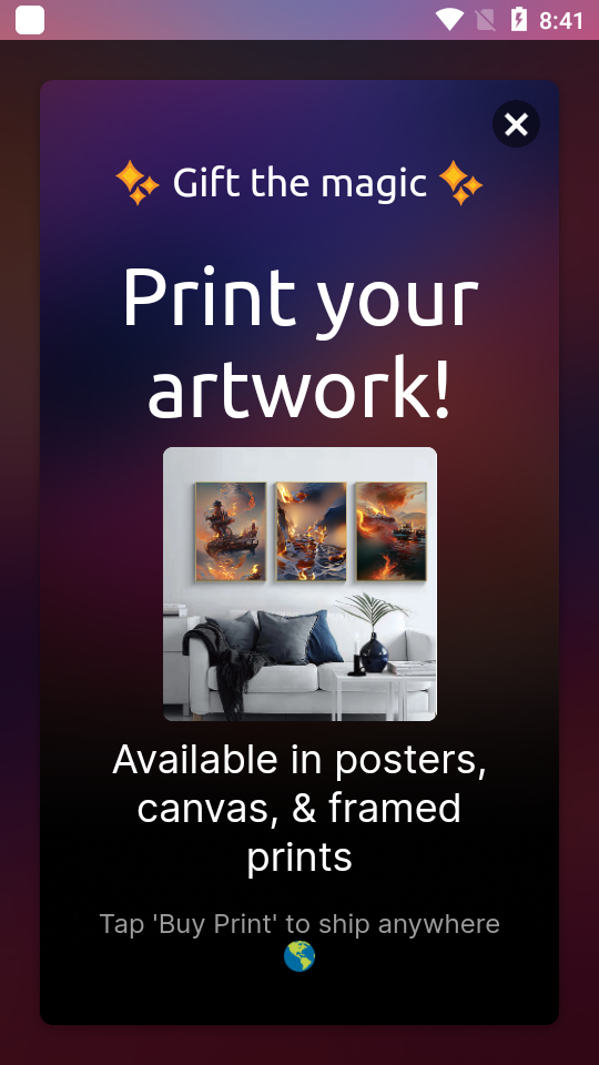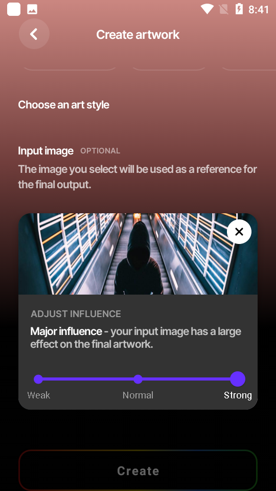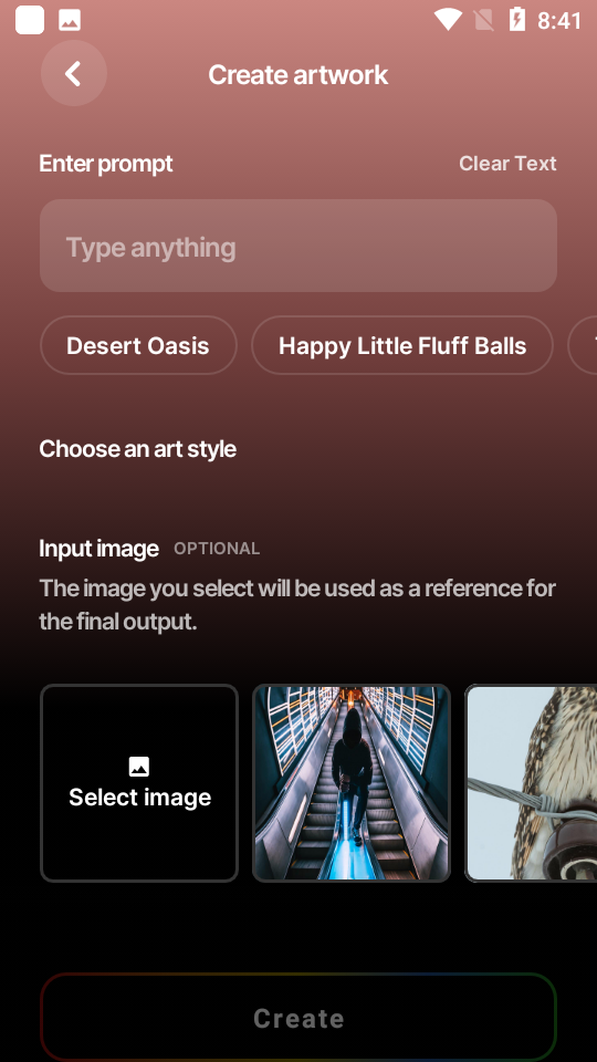 2.生成你的画!—看WOMBO梦想用人工智能的力量,将你的创意和艺术风格转换成一个美丽的画在你的眼前在几秒钟内。
