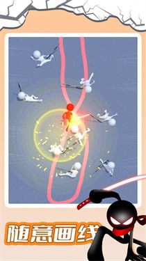 指尖画线对决下载安装是一款轻松解压的画线战斗游戏,游戏操作轻松简单,玩法益智有趣,会给玩家们带来非常新鲜的闯关乐趣,玩家们需要通过画线的方式来指定角色的战斗方式和范围,尽可能快速地将敌人们统统打倒,完成闯关。各种的关卡可以自由去体验。通关奖励也是非常丰厚的,赢取道具就能帮助玩家们快速通关!游戏画风清新简洁,玩家操控你的火柴人忍者,解锁刀剑棍棒武器,面对汹涌而来的敌人,根据实际敌人分布画出进攻路线,一刀带走所有敌人。喜欢的玩家快来下载指尖画线对决游戏吧!