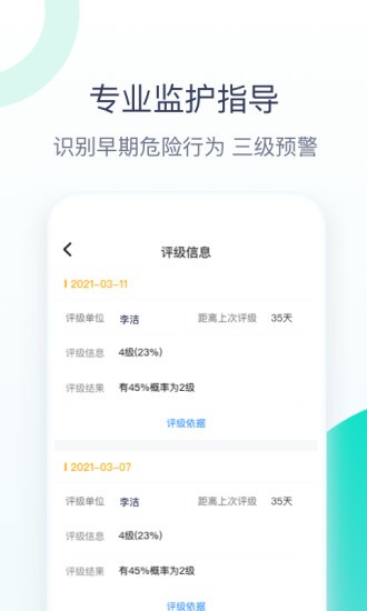 专业监护指导,识别早期危险行为,三级预警,让你及时预警。