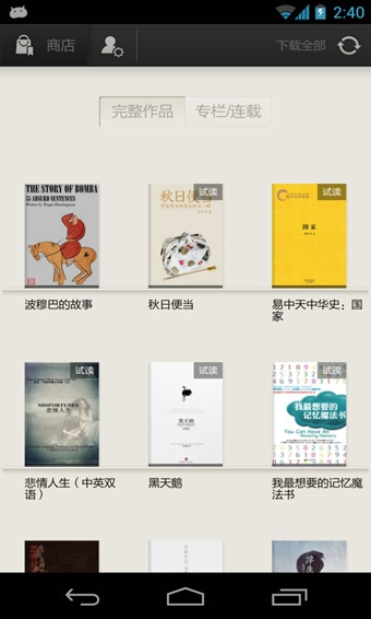 1. 集成作品商店,拥有超过一千种优秀的图书和个人作品,包括近百种免费作品。