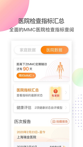 4、拥有医院数据版块,用户在版块中能够看到自己的健康报告,了解健康变化情况;