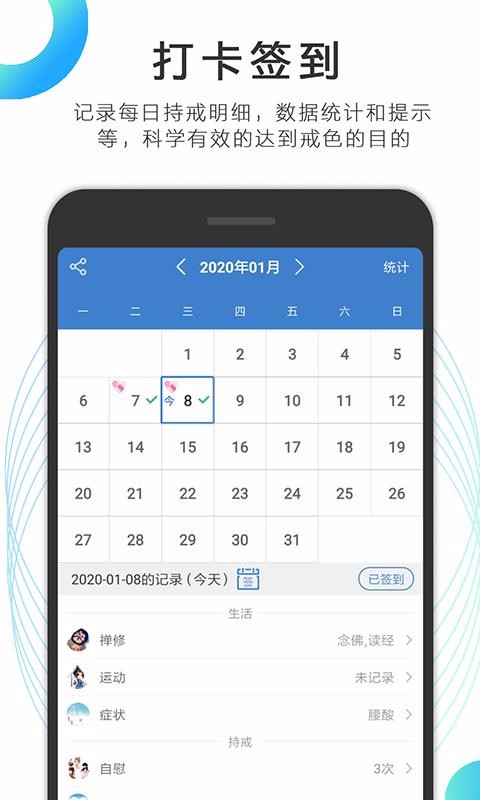 你可以查看自己的持戒记录,查看统计图表,让你能够直观的看到持戒历程;