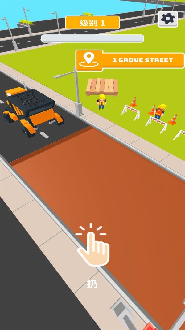 把石头倒在地上,铺开,碾碎成沥青。用一层新漆作最后的修饰。