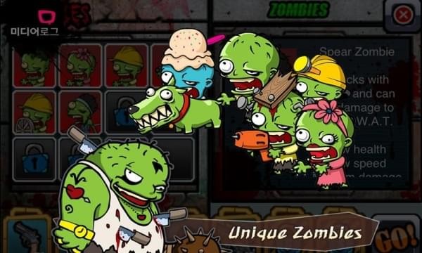 - 古怪的僵尸: 乘上滑板的僵尸,手拿保龄球的僵尸、手握棍抢的僵尸、胖僵尸、穿粉红连衣裙头系粉红带子的僵尸、僵尸狗,您可以遇到个性强的十多种僵尸。