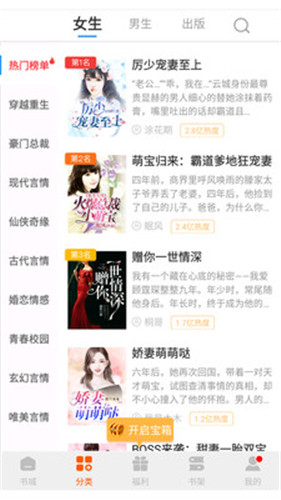 1、精品好书:都市、言情、玄幻、悬疑、穿越重生,甄选海量畅销、好评书籍,涵盖所有分类,让精彩触手可得。