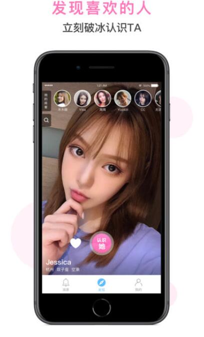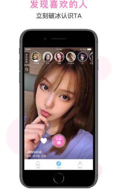 1、发现:上滑下滑发现喜欢的人,付费可以获得对方社交账号,可以为喜欢的人点赞;