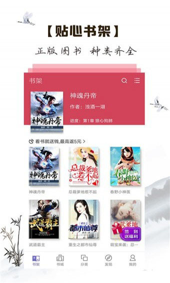 [本地阅读]支持导入和阅读多种格式的内容,自动备份到云书架,不再担心没有书的阅读。都市、玄幻、仙侠、总裁、豪门、言情等各类小说一应俱全,作品实时更新,给您超值的阅读体验!聽