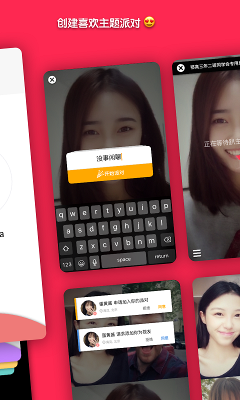 寂寞、无聊随时随地找人视频聊天开派对,喜欢对方一键加趴友,全民开启移动视频社交新纪元。