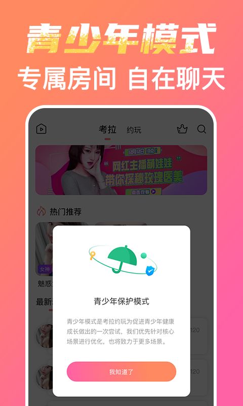 考拉约玩app给亲们带来了一个非常有意思的交友平台哦!在《考拉约玩》这款软件中,里面所有用户的信息都是真实的,还可以选择自己喜欢的小哥哥和小姐姐相互交流和聊天。多种语音效果切换让你体会到不一样的美丽,会为所有的两情相悦的小伙伴们提供非常多的交友,以及拉近关系的功能哟!感兴趣的小伙伴们赶快来下载体验吧!