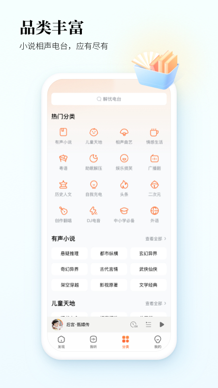 丰富的类别:小说相声电台,应有尽有。