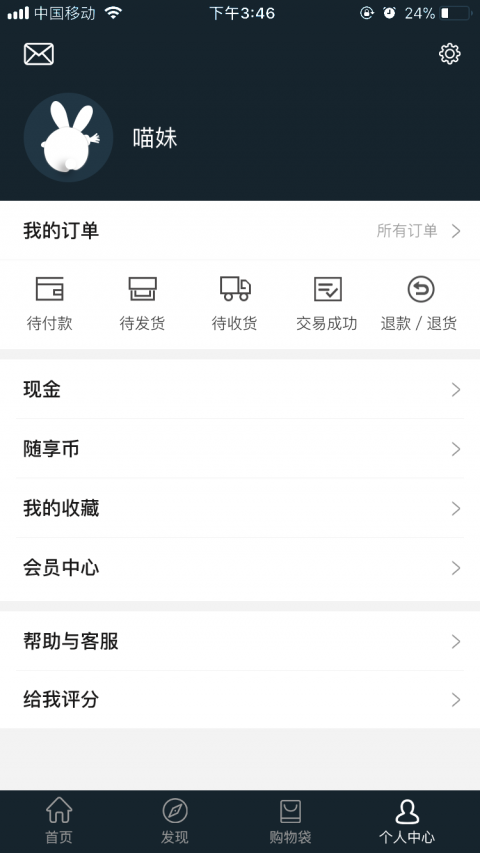 5、点击我的,进入主页面,用户能够在应用中查看相关订单