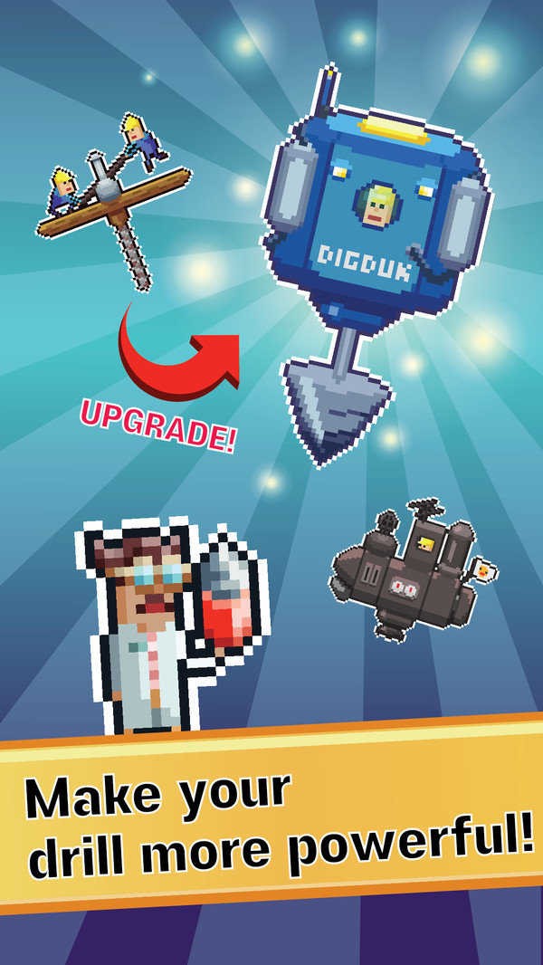 游戏采用经典像素风格设计,打造了一个庞大的采矿世界。在这里,玩家将一步步的从一个小矿工走向富豪,你将通过采矿倒卖不断的获取高端工具,让你的能力变得越来越大,然后慢慢积累财富,到达你意想不到的境界。