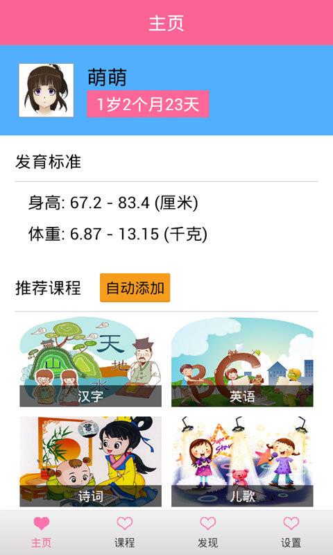 【课程添加】家长可以为宝宝制定学习内容,将其进行添加;