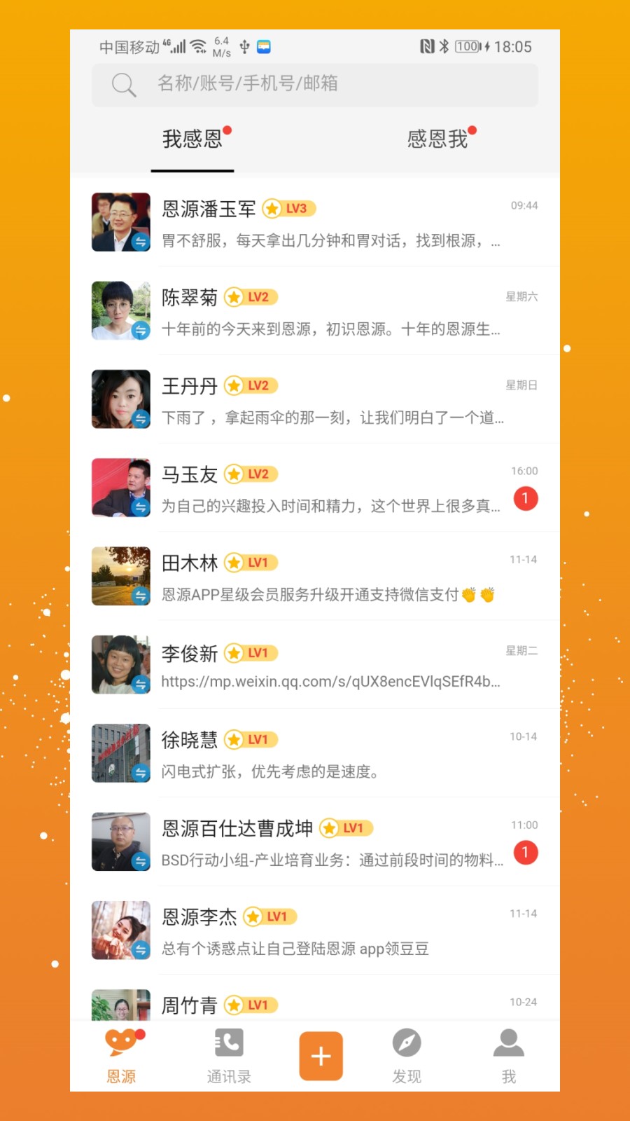 恩源app,一款拥有特殊功能的聊天平台软件,主打正能量聊天服务,平台拥有专属的感恩豆,签到,聊天,完成任务都能获得,感恩豆主要用来赠送,如果有他人帮助你或者分享文章经历都能通过赠送感恩豆的方式来进行互动,共筑一个积极和谐的线上聊天环境。想要一款正能量聊天软件的朋友们不妨试试吧!