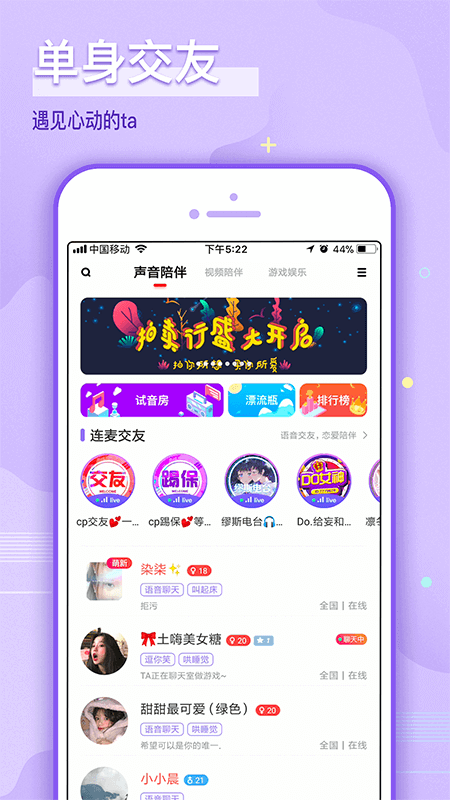 【多人聊天室】 开放性多人聊天室,在线实时互动,选择心动的声音进行亲密互动